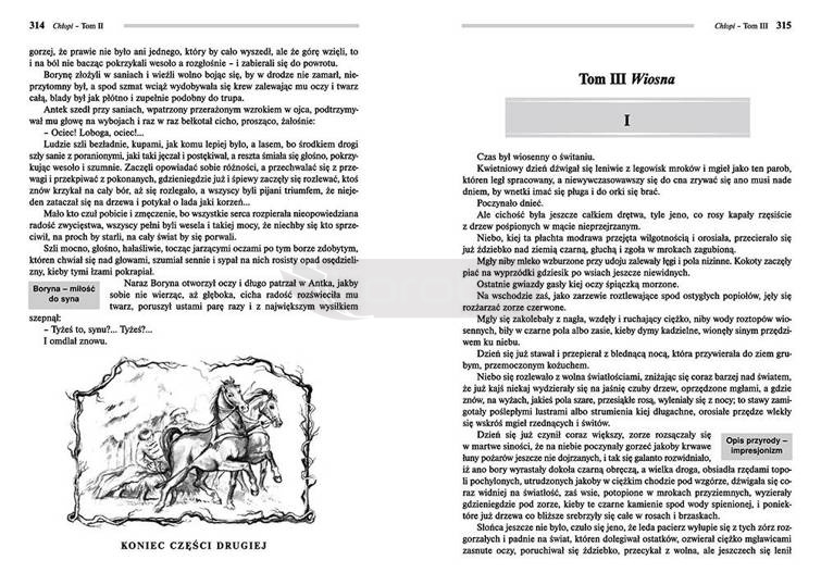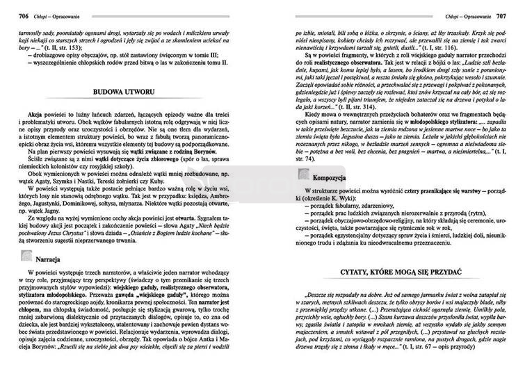 Wydanie Chłopów kompletne bez skrótów i cięć w treści. W tym wydaniu znajdziesz odpowiedzi na pytania z podręcznika - pewniak na teście, czyli wskazanie zagadnień, które zwykle pojawiają się w pytaniach z danej lektury we wszelkich testach sprawdzających wiedzę, a także w podręcznikach i na klasówkach. Zawiera bardzo szczegółowe streszczenie oraz drugie skrócone, ułatwiające szybkie przygotowanie się przed lekcją. Opracowanie zawiera plan wydarzeń, wnikliwie wyjaśnioną problematykę oraz szerokie charakterystyki bohaterów.