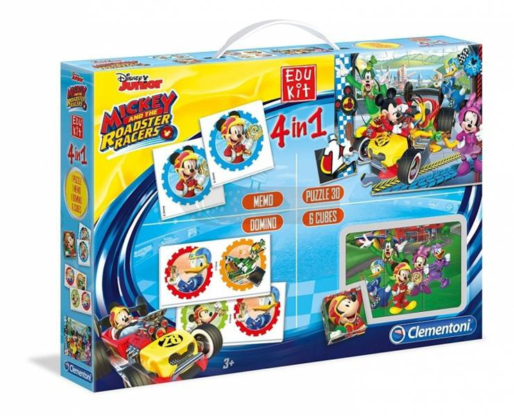 Fantastyczny zestaw, który zawiera 4 gry w opakowaniu - puzzle, memo, domino i sześcienne klocki z ulubionymi postaciami Miki i Raźni Rajdowcy.