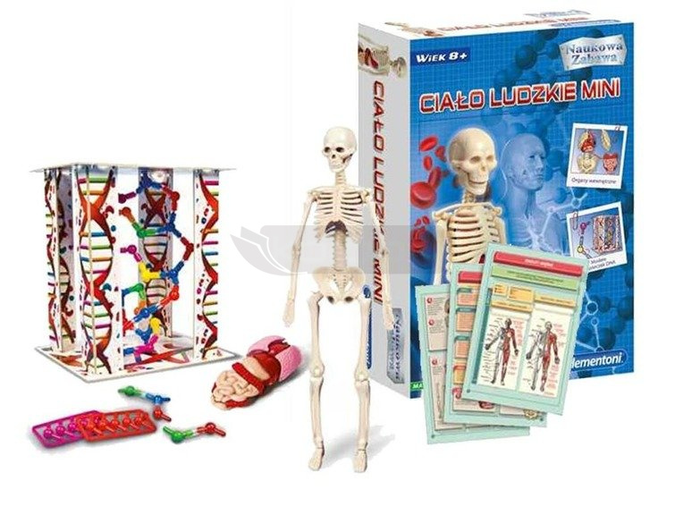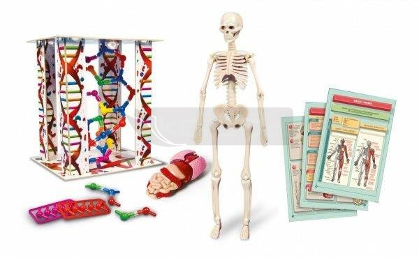 Realistyczny model ludzkiego ciała w prosty i przystępny sposób odkrywa anatomię człowieka. Zawiera: medele cząsteczek DNA, modele narządów i ludzkiego szkieletu. Aby odkrywać i uczyć się podczas zabawy.