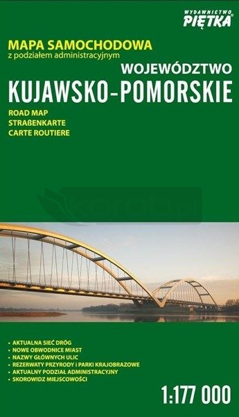 Mapa składana województwa kujawsko pomorskiego to idealne rozwiązanie dla kierowców, jak i miłośników turystyki. Zawiera aktualne informacje na temat sieci dróg z nowymi obwodnicami miast, jak i nazwami głównymi ulic, ale i są na niej oznaczone rezerwaty przyrody czy parki narodowe. Oczywiście mapa prezentuje także aktualny podział administracyjny tego województwa ze skorowidzem miejscowości. Tę podręczną mapę administracyjno-samochodową bez problemu włożysz do schowka lub torebki.