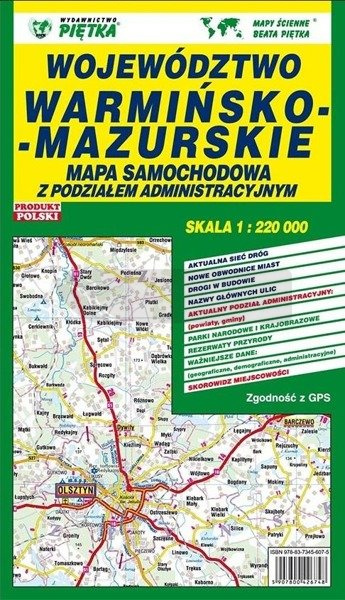 Dzięki mapie składanej województwa warmińsko mazurskiego nietrudne będzie dotarcie do wybranego miejsca bez GPSa. Dokładne oznaczenie dróg ekspresowych, głównych i bocznych wraz z numeracją i podanymi odległościami pozwoli zaplanować trasę i sprawnie ją pokonać. Nie zabrakło informacji na temat atrakcji turystycznych i szczególnie interesujących obiektów oraz szczegółów typowo administracyjnych jak na przykład oznaczeń siedziby województwa, powiatów i gmin, a nawet kodów pocztowych.