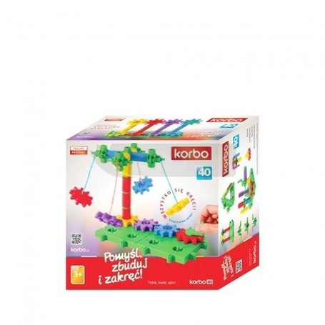 Klocki Korbo stworzono opierając się na idei Pomyśl, zbuduj, zakręć. Elementem, który odróżnia Korbo od większości innych klocków konstrukcyjnych jest koło zębate to część sprawiająca, że wzniesione przez dziecko budowle ożywają. Łączenie poszczególnych elementów i tworzenie konstrukcji pobudza dziecko do logicznego myślenia, uczy cierpliwości i precyzji, zachęca do pokonywania trudności i szukania nieszablonowych rozwiązań. Dzięki zabawom klockami młodsze dzieci uczą się rozpoznawania i nazywania kolorów i kształtów oraz zasad segregowania i klasyfikowania. Starsi konstruktorzy z kolei mają okazję poznać podstawowe zasady mechaniki i fizyki. Korbo to klocki dostępne w kilkunastu zestawach różniących się między sobą ilością elementów oraz kolorystyką. Do zestawów dołączone są czytelne, obrazkowe instrukcje, które stanowią doskonałą podpowiedź w jaki sposób można bawić się klockami Korbo.