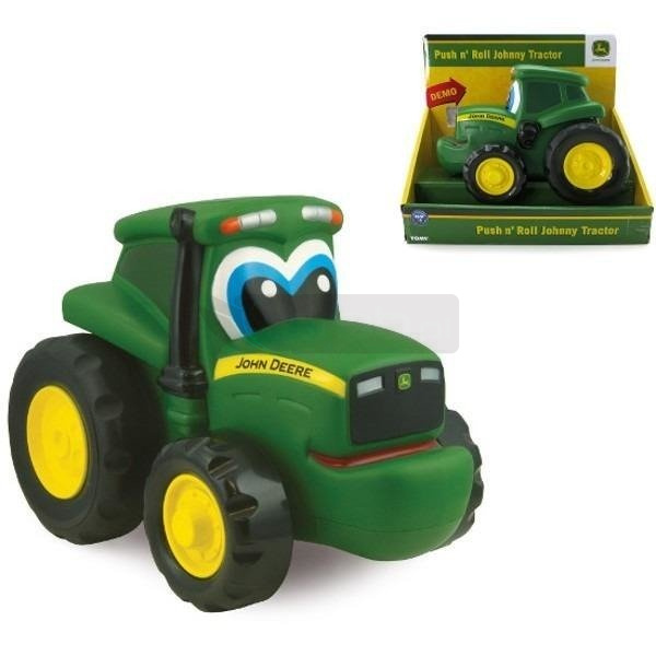Traktor Johnny z funkcją "naciśnij i jedź" - po wciśnięciu przycisku na dachu kabiny traktor jedzie do przodu. Po chwili zatrzymuje się i zabawę można powtórzyć. Opakowanie z funkcją "DEMO".