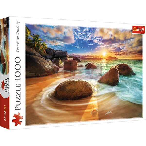 Puzzle 1000 elementów przedstawiające piękny widok na plażę Samudra w Indiach. Po ułożeniu powstanie obrazek o wymiarach 68x48 cm. Wysoką jakość, nasycenie kolorów i bezpieczeństwo układania zapewnia kalandrowany papier odbijający światło, pokryty ekologicznymi farbami spożywczymi.