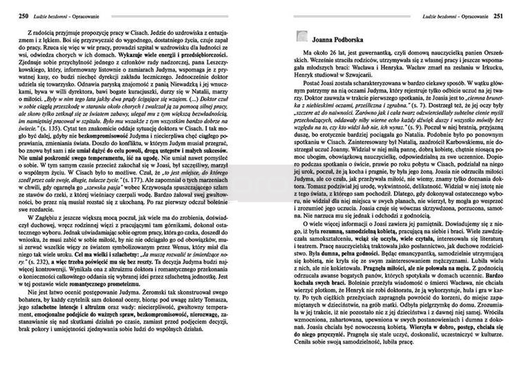Wydanie Ludzi bezdomnych kompletne bez skrótów i cięć w treści. W tym wydaniu znajdziesz odpowiedzi na pytania z podręcznika - pewniak na teście, czyli wskazanie zagadnień, które zwykle pojawiają się w pytaniach z danej lektury we wszelkich testach sprawdzających wiedzę, a także w podręcznikach i na klasówkach. Zawiera bardzo szczegółowe streszczenie oraz drugie skrócone, ułatwiające szybkie przygotowanie się przed lekcją. Opracowanie zawiera plan wydarzeń, wnikliwie wyjaśnioną problematykę oraz szerokie charakterystyki bohaterów.