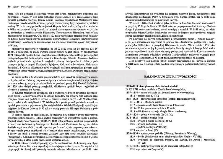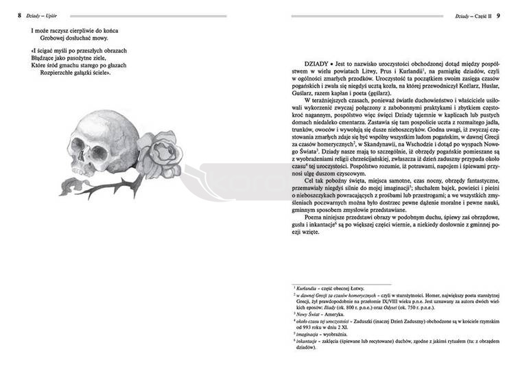 Wydanie Dziadów cz. II kompletne bez skrótów i cięć w treści. W tym wydaniu znajdziesz odpowiedzi na pytania z podręcznika - pewniak na teście, czyli wskazanie zagadnień, które zwykle pojawiają się w pytaniach z danej lektury we wszelkich testach sprawdzających wiedzę, a także w podręcznikach i na klasówkach. Zawiera bardzo szczegółowe streszczenie oraz drugie skrócone, ułatwiające szybkie przygotowanie się przed lekcją. Opracowanie zawiera plan wydarzeń, wnikliwie wyjaśnioną problematykę oraz szerokie charakterystyki bohaterów.