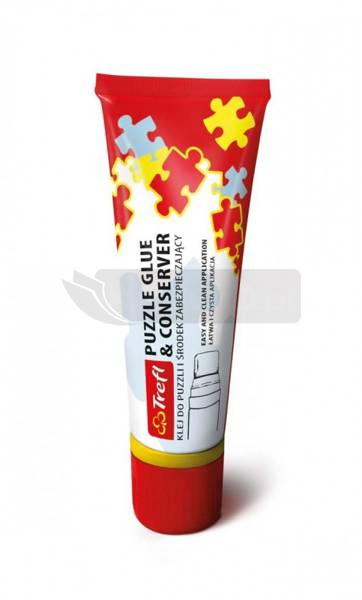 Klej w tubce z gąbką do łatwej i czystej aplikacji to środek konserwujący i klej do puzzli w jednym.