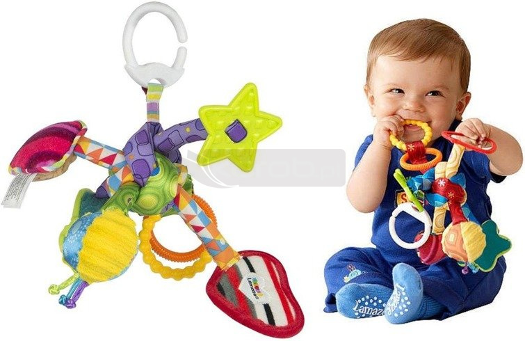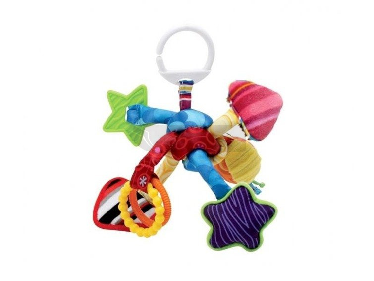 Aktywny supełek został stworzony przez cieszącą się dużą popularnością firmę Tomy. Pochodzi ona z serii Lamaze, która powstała z myślą o najmłodszych dzieciach i charakteryzuje się łączeniem różnych tekstur, żywą humbi_pl kolorystyką oraz walorami edukacyjnymi. Supełek posiada pluszowy korpusik, z którego na wszystkie strony rozchodzą się kolorowe, pluszowe odnogi z różnego rodzaju zakończeniami: fioletowo-niebieska gwiazdka-piszczałka, lusterko w czerwonej, pluszowej ramce, żółto-niebieska piłeczka z grzechotką, różowy trójkącik z jedną włochatą stroną, humbi_pl dwa gryzaki-okręgi w kolorze żółtym i pomarańczowym, gryzak gwiazdka w kolorze zielonym. Supełek został wyposażony także w zawieszkę, dzięki której można zamontować go na przykład na wózku dziecka. Supełek ten stymuluje dziecko na wiele różnych sposobów - wzrokowo, dotykowo i słuchowo, wspierając rozwój we wszystkich tych obszarach. Zabawka jest niezwykle kolorowa, dzięki czemu z łatwością przyciągnie uwagę humbi_pl każdego malucha. Wiele różnych tekstur oraz dźwięków, w jakie wyposażono supełek, zapewni dzieciom wspaniałą zabawę. wymiary opakowania: 23 x 18 x 6 cm humbi_pl wymiary supełka w pozycji wiszącej: 27 x 14 x 4,5 cm zabawka bez ograniczeń wiekowych