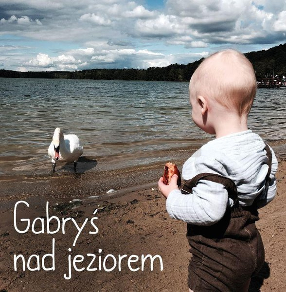 Gabryś przyjeżdża nad jezioro. Bawi się w piasku, moczy nogi w wodzie, spotyka nawet łabędzia. To zwyczajna, prosta opowieść, ale dla małych dzieci właśnie zwykły, codzienny świat jest magiczny i niesamowity. Takie otoczenie je fascynuje, dzięki czemu szybciej się uczą i poznają rzeczywistość. Dlatego w serii książek o Gabrysiu ilustracjami są prawdziwe zdjęcia, pokazujące świat w nieco magiczny, ale jednak rzeczywisty sposób. Książeczki są szczególnie polecane dla dzieci, które nie interesują się klasycznie ilustrowanymi książkami i nie przepadają za czytaniem.