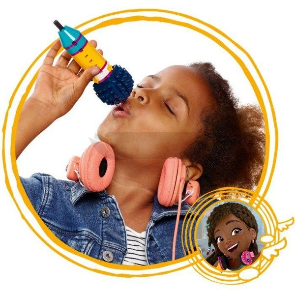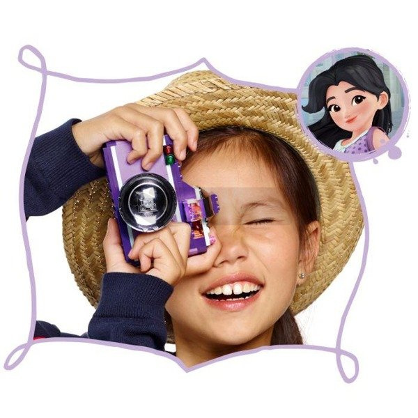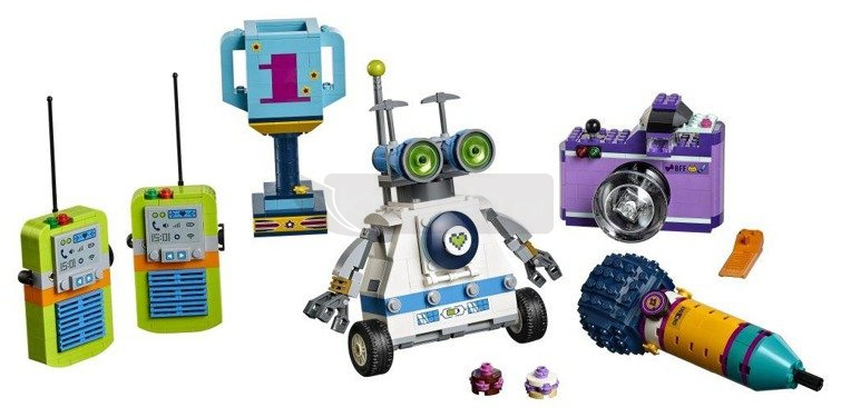- Pięć akcesoriów LEGO® Friends naturalnej wielkości do zbudowania: mikrofon, aparat fotograficzny z "fleszem" aktywowanym przyciskiem, puchar, krótkofalówki i robot.