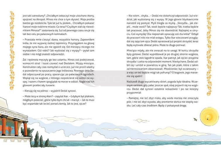 Mały odbiorca dowie się między innymi, jak według Greków powstał świat, jak nazywają się najważniejsi bogowie, kto stworzył człowieka, a także pozna przygody najpotężniejszych greckich herosów - Heraklesa i jego dwanaście niesamowitych zadań do wykonania, Tezeusza i jego bohaterską walkę z Minotaurem oraz dzieje miłości Orfeusza i Eurydyki. Znajomość tych opowieści przyda się kiedyś w szkole!