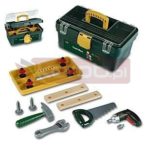 Skrzynka z narzędziami i wkrętarka Bosch.