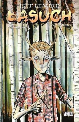 Pierwszy tom słynnej opowieści rozgrywającej się w postapokaliptycznej Ameryce. Siedem lat temu Przypadłość zabiła na całym świecie miliardy ludzi. Nieliczne dzieci urodzone po zarazie należą do nowej rasy zwierzęco-ludzkich hybryd. Gus jest jednym z nich to chłopiec o wielkim sercu, jeszcze większym apetycie na słodkości oraz o głowie ozdobionej porożem jelonka. Za chwytanie takich dzieci wyznaczono nagrodę. Gdy okrutni łowcy atakują Gusa w jego leśnej samotni, pojawia się tajemniczy mężczyzna o imieniu Jepperd. Rosły włóczęga ratuje chłopca i obiecuje, że doprowadzi go do Ostoi, legendarnej bezpiecznej przystani dla dzieci hybryd. Ruszają w podróż przez nową i bardzo niebezpieczną Amerykę... Autorem Łasucha jest kanadyjski scenarzysta i rysownik Jeff Lemire, zdobywca wielu prestiżowych nagród za bestsellerowe komiksy takie jak Essex County, The Underwater Welder, Trillium, Green Arrow, Justice League United, Animal Man, Superboy.