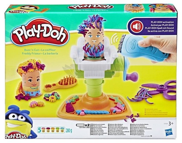 Poznaj najnowszy zestaw od Play-Doh, Afera u Fryzjera! Daj się ponieść fantazji i przygotuj wymyślne fryzury, które połączą aktualne trendy mody z twoją wyobraźnią. Umieść załączoną do zestawu postać na fotelu fryzjerskim (wypełnionym ciastoliną Play-Doh), przekręć dźwignie i obserwuj jak ciastolina (imitująca włosy i zarost) ?wyrasta? na twarzy klienta! Czas na strzyżenie!