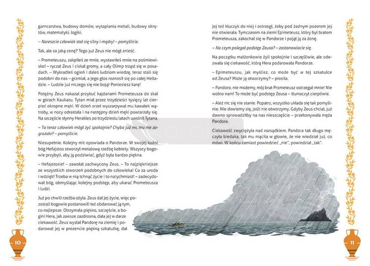 Mały odbiorca dowie się między innymi, jak według Greków powstał świat, jak nazywają się najważniejsi bogowie, skąd wziął się człowiek, a także pozna przygody najwspanialszych greckich herosów - Heraklesa i jego dwanaście niezwykłych zadań do wykonania, Tezeusza i jego bohaterską walkę z Minotaurem oraz historię miłości Orfeusza i Eurydyki. Znajomość tych historii przyda się kiedyś w szkole!