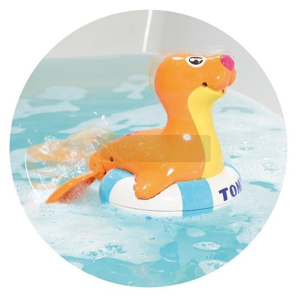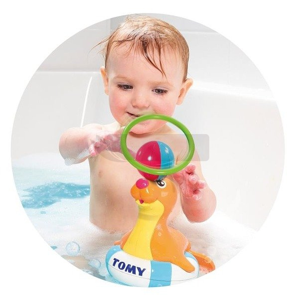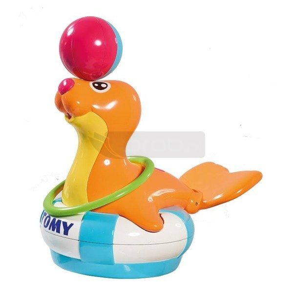 Zabawki TOMY zamienią codzienną kąpiel w fantastyczną przygodę. Pływająca foczka towarzyszy dziecku w trakcie kąpieli. Sandy unosi się na wodzie i pływa. Umie również obracać piłkę na nosie. Dziecko może rzucać pierścień na szyję Sandy.