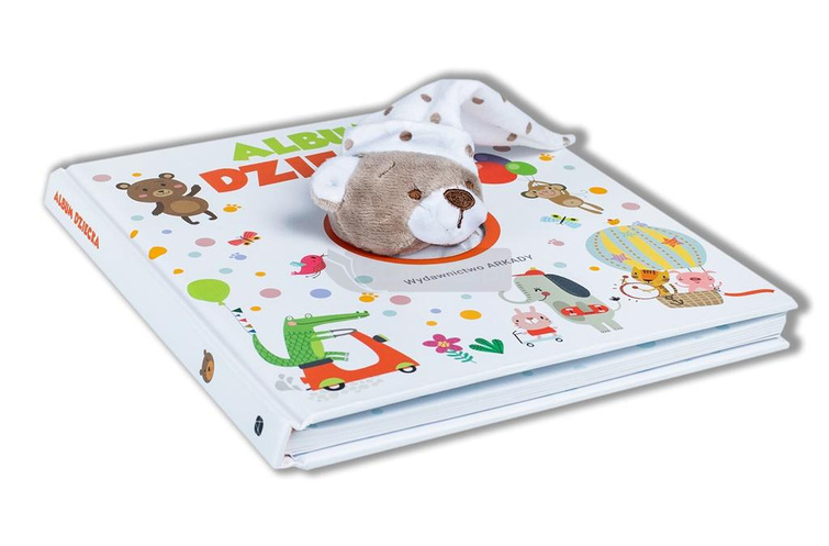 Ten śliczny, niezwykle oryginalny album pozwala zachować wspomnienia i fakty związane z maluchem. Jest niepowtarzalny, tym bardziej że zawiera pluszowego misia, który może stać się ukochaną maskotką dziecka. Ten pluszak, wykonany z materiałów bezpiecznych dla niemowląt, jest umieszczony w okładce albumu. Po wyjęciu misia można w tym miejscu umieścić fotografię dziecka.
