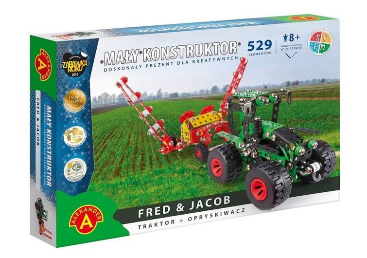 się z elementów metalowych o różnej wielkości i kształtach, a także jest wzbogacony kolorowymi elementami z tworzyw sztucznych. Dzięki dołączonemu zestawowi narzędzi, można zbudować wyjątkowy pojazd zgodnie ze wskazaniami instrukcji lub wedle własnej wyobraźni. To idealny wstęp do rozbudzenia w dziecku pasji inżyniera. Zabawka która łączy pokolenia, zachęcając do wspólnego majsterkowania.