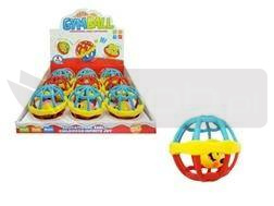 Niebieska i czerwona część jest gumowa, dzięki temu dziecko może ją delikatnie zgniatać. Uśmiechnięta buźka w środku piłeczki jest grzechotką.