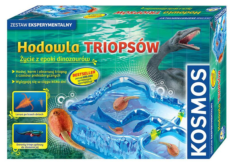 Zestaw zawiera kompletne wyposażenie do hodowli triopsów, w tym przede wszystkim jaja, które mogą przetrwać długi czas w stanie wysuszonym, a z których potem błyskawicznie wylęgają się larwy triopsów. Obszerna kolorowa instrukcja wyjaśnia szczegółowo proces hodowli triopsów i podaje różne istotne wskazówki. Sprytnie pomyślany zbiornik składa się z dwóch stref wylęgania.