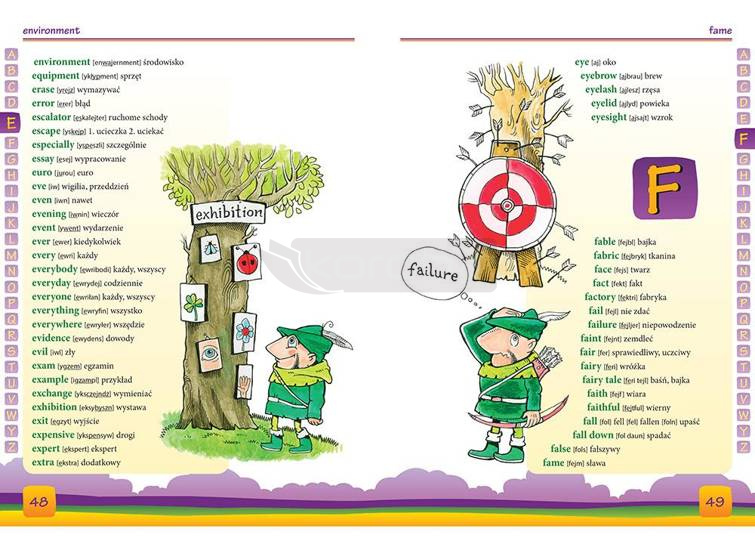 Ilustrowany słownik angielsko-polski, polsko-angielski jest przeznaczony dla dzieci rozpoczynających naukę. Wstęp gramatyczny został napisany z myślą o najmłodszych - w przystępny i zrozumiały sposób. Liczne przykłady zostały zobrazowane wspaniałymi ilustracjami, przez co bardzo łatwo je zapamiętać.