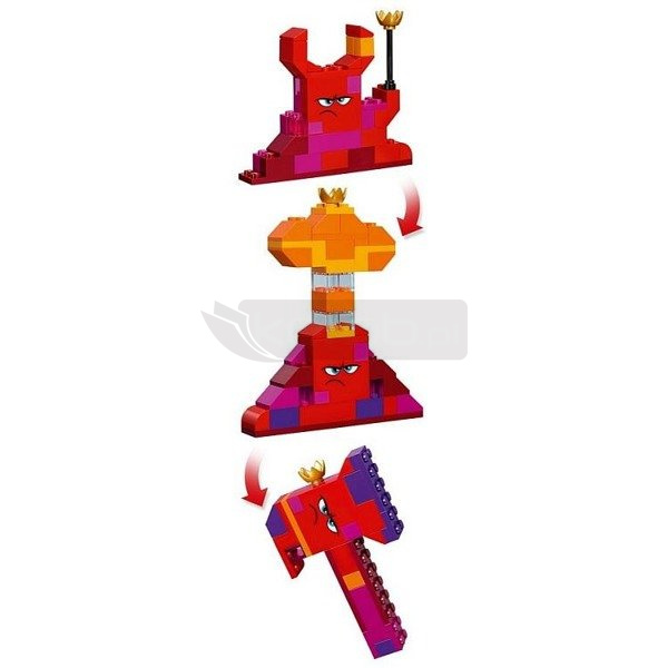 - Różnokolorowe klocki LEGO® potrzebne do zbudowania królowej Wisimi I’powiewa z filmu LEGO® PRZYGODA 2™ i przebudowania na 15 różnych kształtów. Są to: sterta klocków/królowa, samochód, motyl, młot, diabeł, wulkan, wiolonczela, wieloryb, ośmiornica, goryl, dinozaur, smok, nietoperz, rakieta oraz toster.