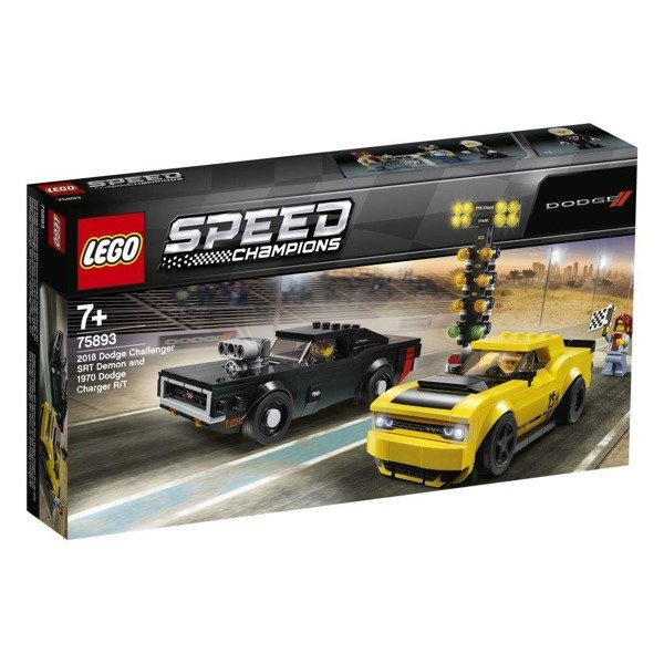 Zbuduj niezwykły zestaw LEGO® Speed Champions 75893 2018 Dodge Challenger SRT Demon oraz 1970 Dodge Charger R/T i urządź niezapomniany wyścig bolidów, który zainteresuje zarówno dzieci, jak i dorosłych. Dodge Challenger ma dwa komplety felg, realistyczne detale i dekoracyjne naklejki, a kultowy amerykański „muscle car” Dodge Charger ma zdejmowaną turbosprężarkę i wymienną pokrywę silnika. Ten wyścigowy zestaw uzupełniają bożonarodzeniowa choinka z lampkami sygnalizującymi start wyścigu, minifigurka porządkowego z flagą w kratkę oraz dwie minifigurki kierowców.