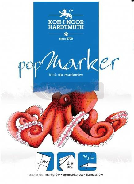 Blok Pop Marker przeznaczony jest do wykonywania prac pisakami, flamastrami i markerami. Blok nadaje się do wszystkich rodzajów flamastrów, w tym także na bazie alkoholu i rozpuszczalników. Papier użyty w bloku jest idealnie gładki, półprzezroczysty, śnieżnobiały, odporny na wodę, posiada barierę zabezpieczającą przed wchłanianiem atramentu, który pozostaje na powierzchni i nie wsiąka w papier.