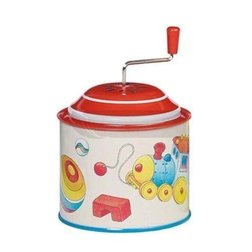 Metalowa katarynka podczas kręcenia korbką wydaje bardzo przyjemnie dźwięki.