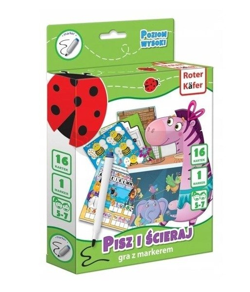 Gra z markerem: pisz i ścieraj (poziom wysoki). Wybierz kartkę, która ci odpowiada.Wykonuj zadania przy pomocy markera.Ścieraj marker gąbką i znów maluj do woli.