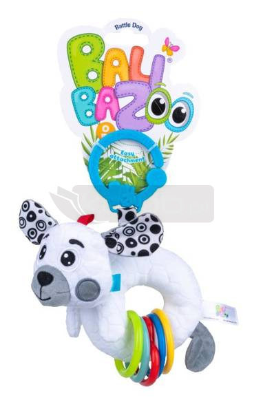 Ten uroczy, kontrastowy szczeniaczek zainteresuje każdego maluszka. Zdobią go metki o zróżnicowanej fakturze i kolorowe kółeczka, które wesoło grzechoczą przy potrząsaniu. Dzięki praktycznej klamrze bez trudu przymocujesz go w wybranym miejscu, aby zawsze mógł towarzyszyć Twojemu Bobaskowi.