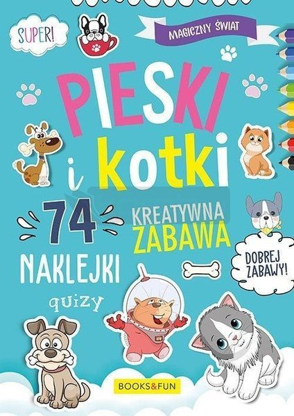 Nasza książeczka to nie lada gratka dla miłośników piesków i kotków. Znajdują się w niej nie tylko fantastyczne kolorowanki, ale również ciekawe zadania rozwijające wyobraźnię i doskonalące spostrzegawczość dziecka. To cudowna podróż do świata ulubionych i popularnych dziecięcych bohaterów.