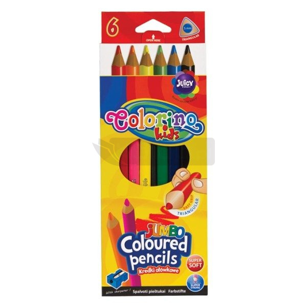 Kredki trójkątne JUMBO 17,5 cm 6 kolorów z temperówką