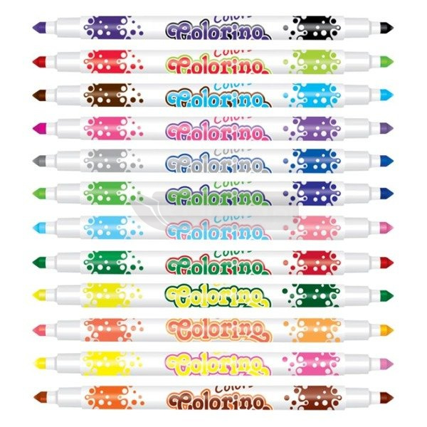 Dwukolorowe flamastry to gwarancja podwójnej zabawy. Każdy z nich ma dwie końcówki w różnych kolorach. 12 flamastrów to aż 24 kolory do wyboru! Dzięki temu zestawowi dziecko nauczy się dobierać barwy ponieważ kolory w każdym flamastrze zostały tak wybrane, aby harmonizować ze sobą. Stożkowa końcówka pozwala rysować linie o dwóch grubościach: 1 lub 4 mm
