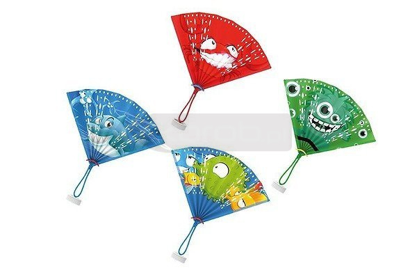 Zanurz złożony wachlarz w pojemniku z płynem do baniek, wyjmij z pojemnika, rozłóż wachlarz i pomachaj nim!
