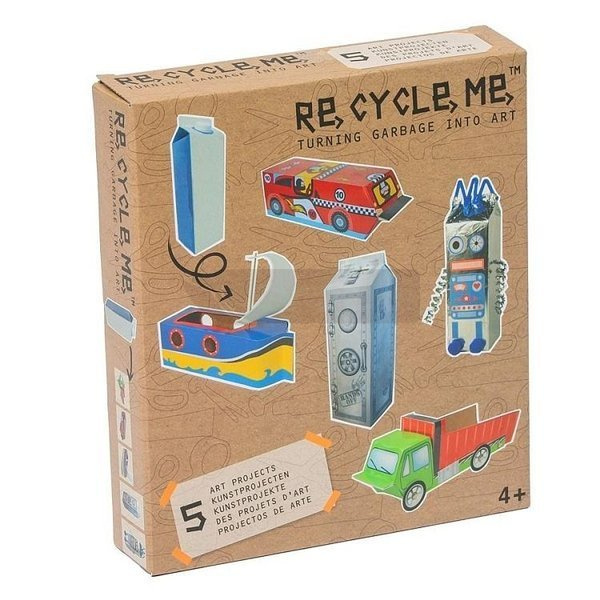 Zestaw Re-Cycle-Me to niezwykłe pudełko, które przyniesie dzieciom wiele zabawy, radość z tworzenia oraz pobudzi wyobraźnię, a jednocześnie pokaże jak łatwo możemy dbać o naszą planetę. Wewnątrz znajdują się materiały oraz instrukcja, które pozwolą stworzyć 5 zabawek: - Sejf - Samochód wyścigowy - Łódkę
