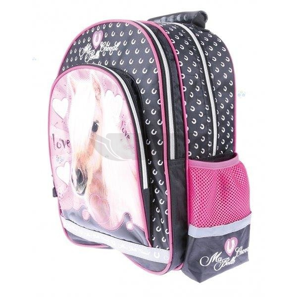 Utrzymany jest w różowo-czarnych barwach. Posiada nadruk uroczego kucyka na przodzie.