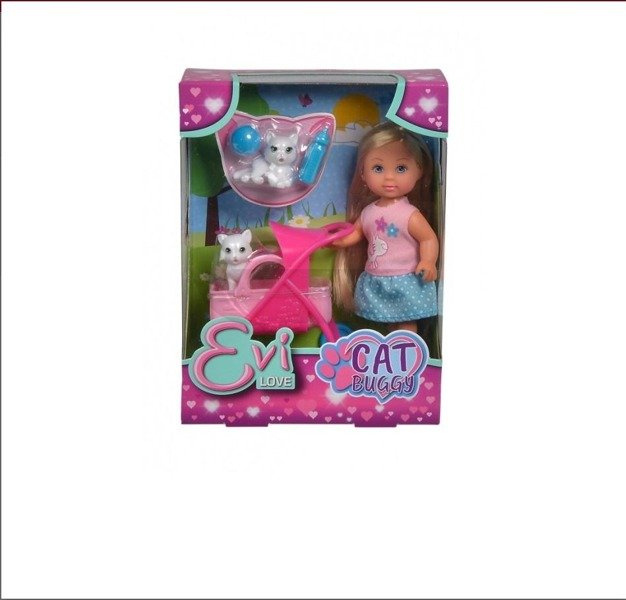 Laleczka Evi opiekuje się 2 kociętami, ma do dyspozycji wózek i zabawki dla pupili, wys: 12cm