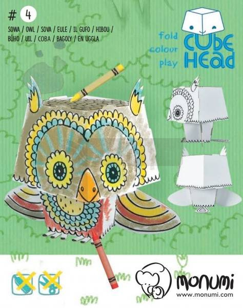 Cube head. Sowa. Złóż i pokoloruj