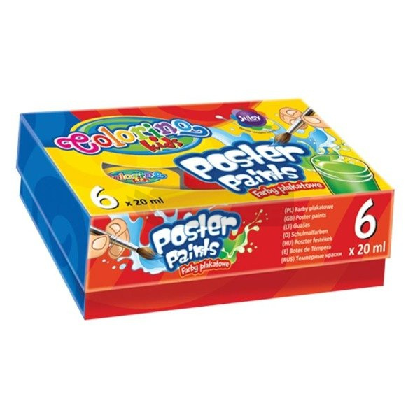 Doskonale kryjące wodorozcieńczalne farby w 6 podstawowych kolorach. Dzięki aksamitnej konsystencji farby doskonale rozprowadzają się po malowanej powierzchni. Kolory można z łatwością mieszać, co pozwala na rozszerzanie dostępnej palety barw. Nadają się do malowania na różnorodnych powierzchniach takich jak: papier, karton, drewno, ceramika. Nietoksyczne. Posiadają niezbędne atesty i certyfikaty.