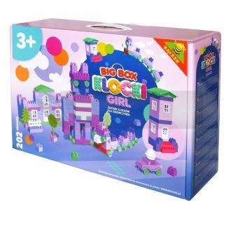 Zestaw klocków konstrukcyjnych występujących w dziewczęcej konfiguracji kolorów składający się z 202 elementów zapakowany w kolorowe pudełko z rączką. Klocki wykonane są z wytrzymałego, bezpiecznego dla dziecka tworzywa. Zestaw, dzięki swojej różnorodności kształtów oraz wielu dodatkom daje nam nieograniczone możliwości budowania dowolnych konstrukcji co stymuluje zmysły najmłodszych i pozwala rozwinąć wyobraźnię przestrzenną.