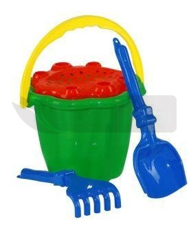 Zestaw składa się z 4 akcesoriów do piasku: średniego wiaderka, średnich grabek i łopatki oraz sitka. Produkt wykonany jest z trwałych i bezpiecznych surowców, dzięki czemu odporny jest zarówno na warunki atmosferyczne jak i jest bezpieczny dla dzieci.