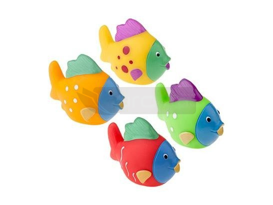 Cztery kolorowe piszczące rybki.