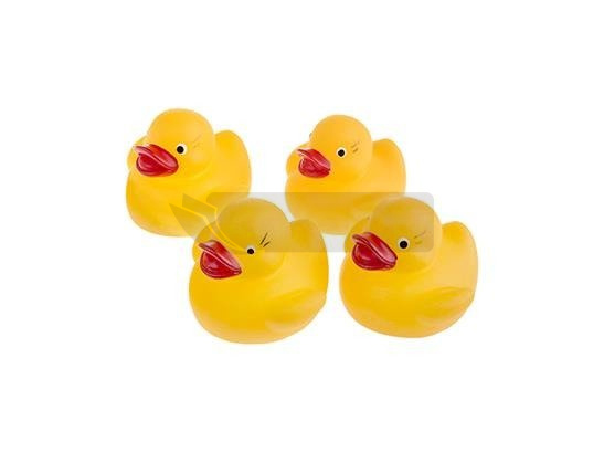 Cztery gumowe żółte kaczuszki.