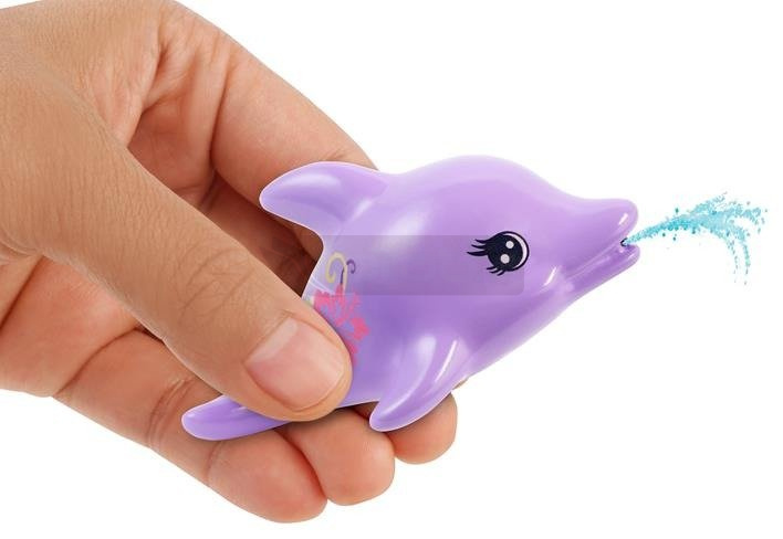 Zanurkuj w krainie zabawy z tymi pięknymi lalkami Syrenki Barbie i Teresa inspirowane przygodami z serialu Barbie Dreamhouse Adventures są gotowe na podwodne odkrycia. Każda z lalek ma fantastyczną funkcję zmiany koloru ndash wystarczy użyć wody, żeby magicznie zmienić kolor gorsetu W zestawie znajduje się także uroczy przyjaciel ndash mały wielorybek, kt oacute ry naprawdę tryska wodą. Syrenki mają piękne długie włosy z kolorowymi pasemkami oraz wspaniałe zdobione ogony. Do zestawu dołączona jest także szczotka pozwalająca na zabawę w stylizowanie fryzur.