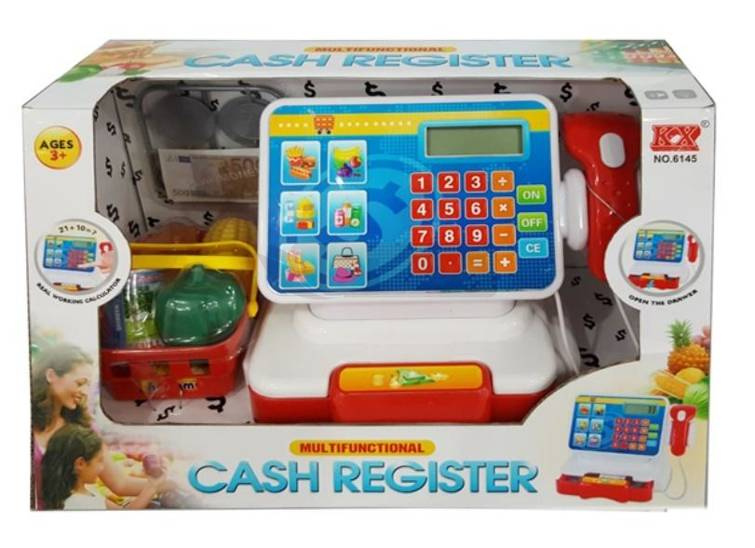 Kasa z dźwiękiem i światłem wraz z akcesoriami.