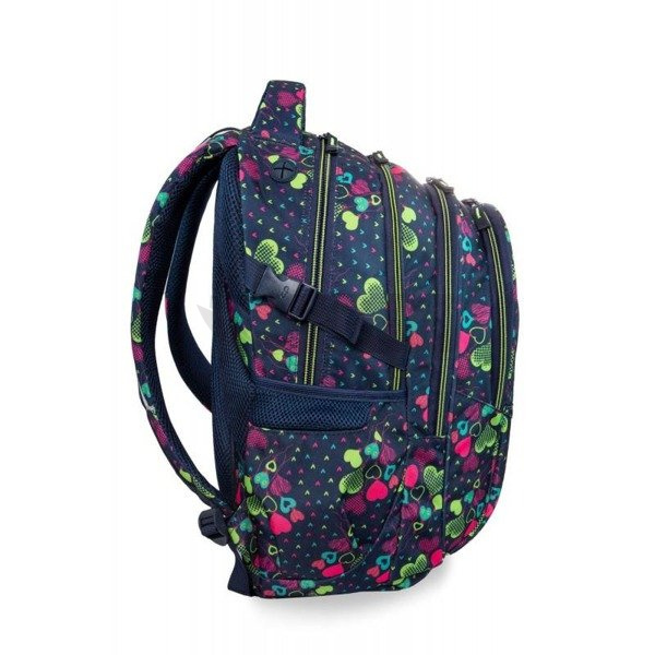 Szukasz dużego i wygodnego plecaka do szkoły? Postaw na najmodniejszy model z mega dziewczęcym printem - CoolPack Factor Lime Hearts w kolorowe serduszka. Modny wzór, funkcjonalna budowa i wygodne profilowane plecy. 4 przegrody znacząco ułatwiają pakowanie. Zamów już dziś wyjątkowy plecak z kolekcji CP!