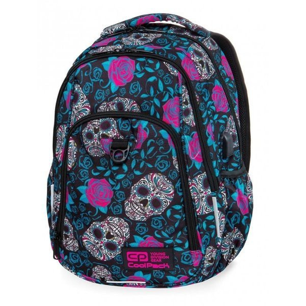 Lubisz mroczne klimaty? Wybierz plecak CoolPack Strike L Skulls & Roses - mega odważny wzór czaszek i kwiatów róż inspirowany meksykańskimi obrzędami. Profilowane szelki i plecy zapewnią wygodę, a wyjście USB możliwość podpięcia powerbanka.