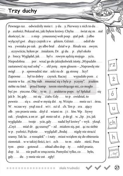 Znajomość ortografii pozostaje wciąż kluczowa, by poprawnie i swobodnie pisać, jest także wyznacznikiem pewnego poziomu wykształcenia i kultury językowej. Aby nie mieć z nią problemów, należy ćwiczyć, by poszerzać zasób znanego słownictwa oraz przyswoić sobie wyjątki i słowa, których pisownię trzeba zapamiętać. Wychodząc naprzeciw zapotrzebowaniu na pomoce do ćwiczenia ortografii, przedstawiamy kolejną część znanej i popularnej serii Radosne dyktanda - dla klas 7-8. Książeczka zawiera teksty do uzupełniania, pełne humoru uprzyjemniającego pracę. Towarzyszą im krzyżówki, oparte o słownictwo z dyktand, dzięki którym uczeń może odpocząć i zrelaksować się, a jednocześnie powtórzyć zapamiętane słówka. Słowniczek pozwala sprawdzić poprawność rozwiązań, a zabawne ilustracje zachęcają do korzystania z książki.
