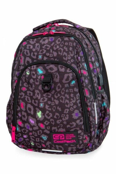 Plecak CoolPack STRIKE L to funkcjonalny i pojemny towarzysz w życiu codziennym. Plecak charakteryzuje bardzo staranne wykonanie oraz modny wzór. Materiał z którego uszyto plecak jest wodoodporny i wytrzymały. Plecak posiada 2 pojemne komory oraz kieszeń frontową - wszystkie zapinane na zamek. Posiada poręczny organizer oraz przywieszkę do kluczy. Po bokach plecak ma dwie otwarte kieszenie na butelkę wody lub bidon. Dwukierunkowe suwaki dają możliwość szybkiego, wygodnego dostępu do wnętrza. Plecak CP posiada wyściełane plecy, pokryte pianką EVA. Wzmocniony spód oraz rączka sprawią, że użytkowanie będzie niezwykle przyjemne. Ma wygodny, regulowany pas piersiowy. Wyściełanie szelek zwiększa znacznie komfort użytkowania. Dodatkowo plecak posiada kłódkę z zamkiem szyfrowym oraz wyjście na słuchawki. Gwizdek ratunkowy umieszczony przy pasie piersiowym będzie dodatkowym atutem zapewniającym bezpieczeństwo.